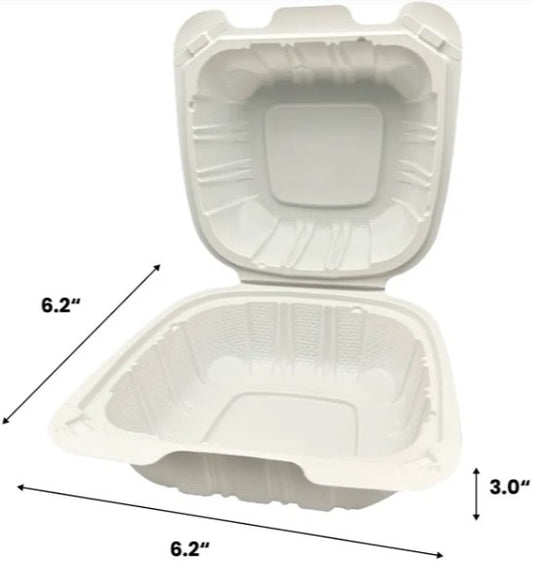 ECOX 6”x 6“ Mineral Filled PP Hinged Containers | White 250/Case