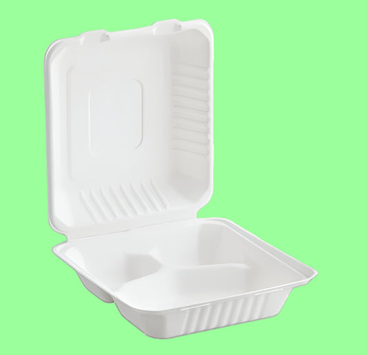 Ecox Compostable 9" x 9" x 3" 3 compartment Take-Out Box - 200/Case