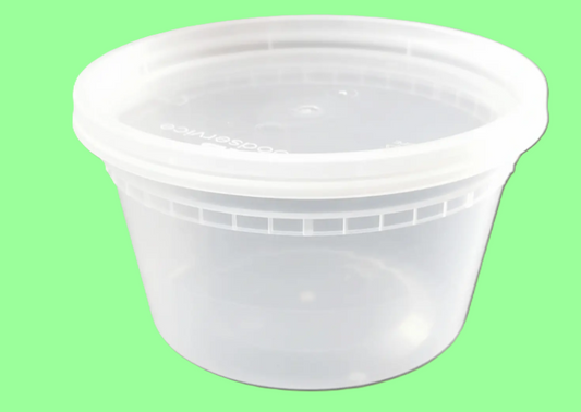 Ecox Heavy Duty 12 oz. Microwavable, Non Spill, Airtight Sealable Reusable Plastic Deli Container and Lid Combo Pack - 240/Case