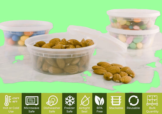 Ecox Heavy Duty 8 oz. Microwavable, Non Spill, Airtight Sealable Reusable Plastic Deli Container and Lid Combo Pack - 240/Case